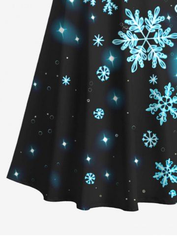 Plus Size Christmas Snowflake Star Glitter 3D Print Cold Shoulder Crisscross Maxi Dress - Black - 3x