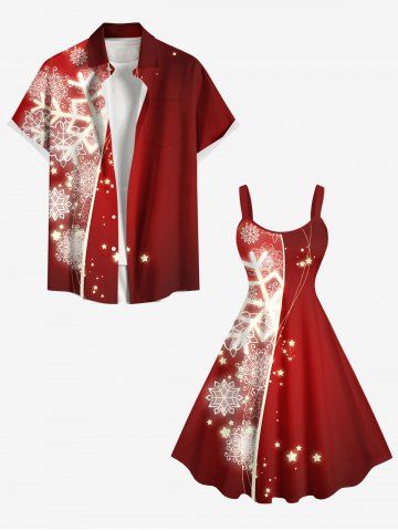 Plus Size Christmas Snowflake Stars Print Tank Dress - Red - 2x
