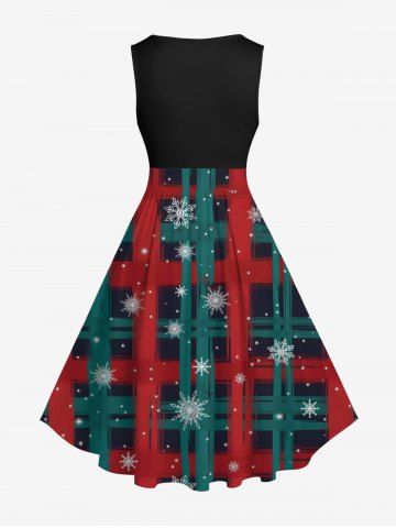 Plus Size Christmas Snowflake Striped Plaid Galaxy Print Vintage Swing A Line Dress - Black - 5x