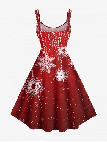 Plus Size Christmas Snowflake Tassels Print Tank Dress - Red - 5x