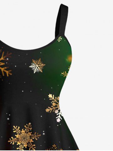Plus Size Christmas Snowflake Tie Dye Ombre Print A Line Tank Dress - Black - 4x