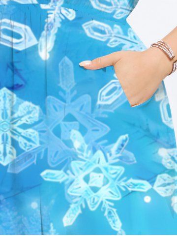 Plus Size Christmas Snowflake Tie Dye Ombre Print Split Midi Dress - Blue - 1x