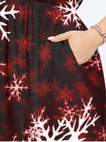 Plus Size Christmas Snowflake Tie Dye Print Split Midi Dress - Red - 5x