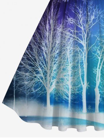 Dresses > Plus Size Christmas Snowflake Tree Road River Print Ombre Vintage Swing A Line Dress