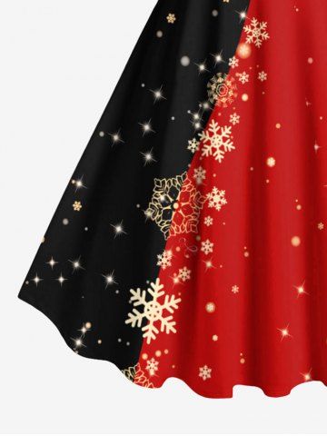 Plus Size Christmas Snowflake Two Tone Colorblock Star Glitter 3D Print Tank Dress - Black - M