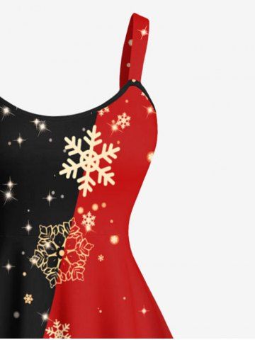 Plus Size Christmas Snowflake Two Tone Colorblock Star Glitter 3D Print Tank Dress - Black - 6x