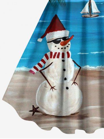 Plus Size Christmas Snowman Coconut Tree Sea Sailboat Print Hawaii A Line Dress - Sky Blue - S