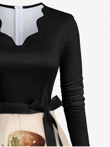Plus Size Christmas Snowman Floral Holly Leaf Print Scalloped Neck A Line Dress with Tied Belt - Multi-a - 5xl