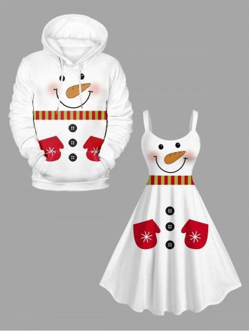 Plus Size Christmas Snowman Gloves Buttons Print Tank Dress - White - M