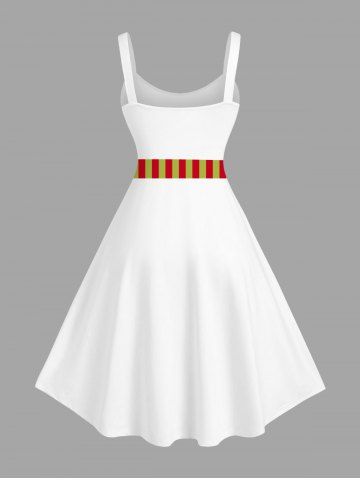 Plus Size Christmas Snowman Gloves Buttons Print Tank Dress - White - L