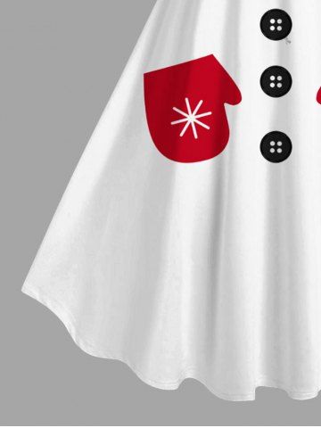 Plus Size Christmas Snowman Gloves Buttons Print Tank Dress - White - 4x