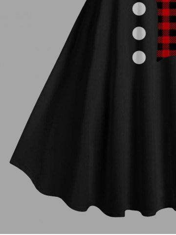Plus Size Christmas Snowman Plaid Scarf Print A Line Tank Dress - Black - 4x