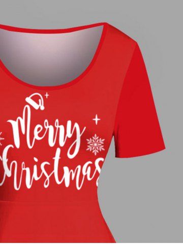 Plus Size Christmas Snowman Santa Claus Snowflake Print Vintage Dress - Red - S