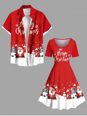 Plus Size Christmas Snowman Santa Claus Snowflake Print Vintage Dress - Red - 1x