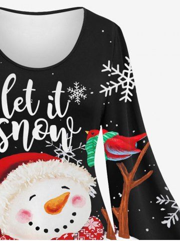 Plus Size Christmas Snowman Snowflake Bird Letters Printed Flare Sleeves Dress - Black - 1x