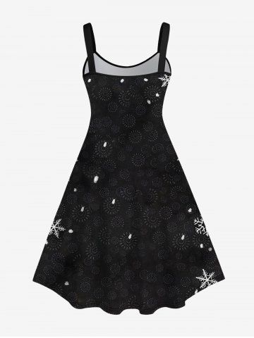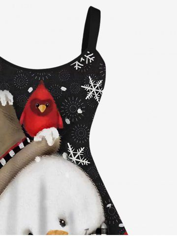 Plus Size Christmas Snowman Snowflake Bird Print Tank Dress - Black - S