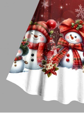 Plus Size Christmas Snowman Snowflake Colorblock Print Vintage Dress - Red - Xs