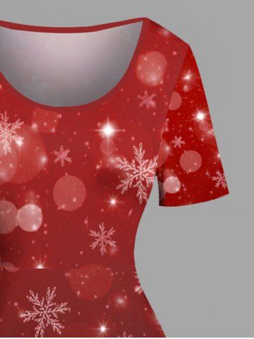 Plus Size Christmas Snowman Snowflake Colorblock Print Vintage Dress - Red - L