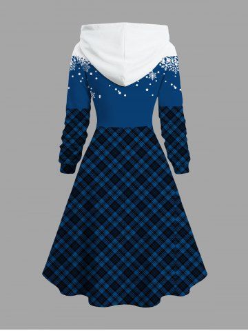 Plus Size Christmas Snowman Snowflake Plaid Colorblock Print Lace Up Drawstring Hoodie Dress - Navy Blue - 5x