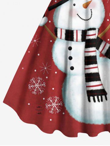 Plus Size Christmas Snowman Snowflake Print Tank Dress - Red - Xs