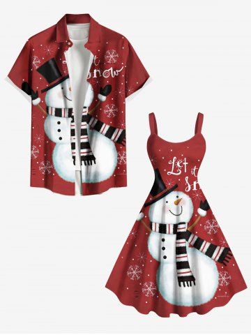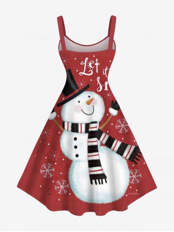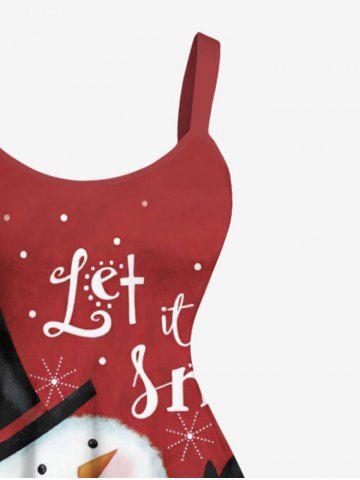 Plus Size Christmas Snowman Snowflake Print Tank Dress - Red - S