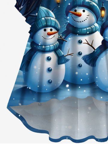 Plus Size Christmas Snowman Snowflake Tree Street Light Print Flare Sleeve Ruched High Low Dress - Sky Blue - 4x