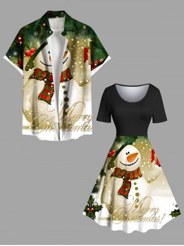 Plus Size Christmas Snowman Star Snowflake Print Vintage Dress - Black - Xxs