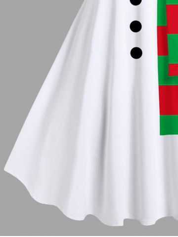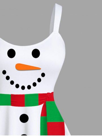 Plus Size Christmas Snowman Striped Scarf Print Tank Dress - White - M