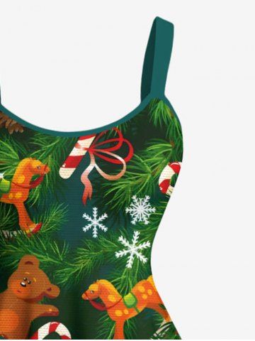 Plus Size Christmas Stocking Bell Bear Candy Snowflake Print Tank Dress - Green - 4x