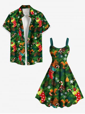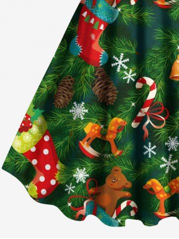 Plus Size Christmas Stocking Bell Bear Candy Snowflake Print Tank Dress - Green - 5x