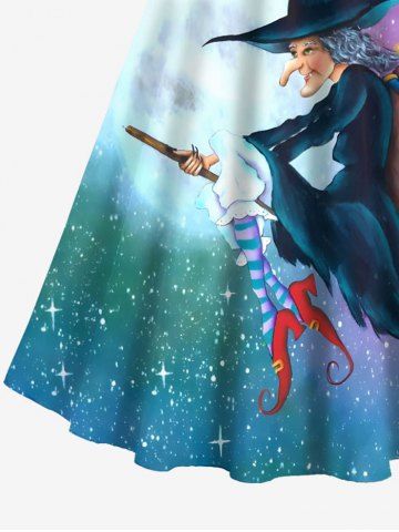 Plus Size Christmas Stocking Wizard Light Galaxy Print Scalloped Neck A Line Dress with Tied Belt - Multi-a - 2xl