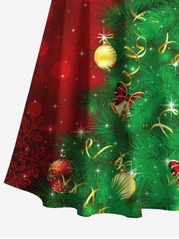 Plus Size Christmas Tree Ball Bell Star Snowflake Print Cold Shoulder Crisscross Maxi Dress - Multi-a - M