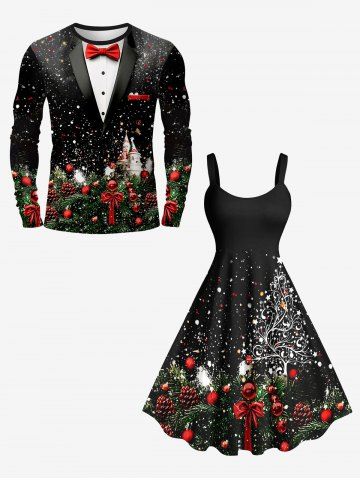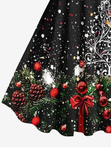 Plus Size Christmas Tree Ball Bowknot Snowflake Star Castle Print Tank Dress - Black - 3x