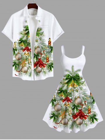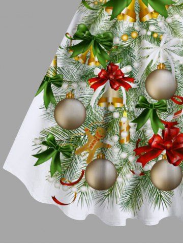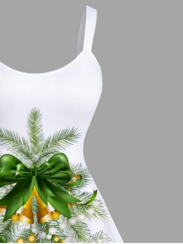 Plus Size Christmas Tree Ball Candle Bells Bowknot Light Print Tank Dress - White - 1x