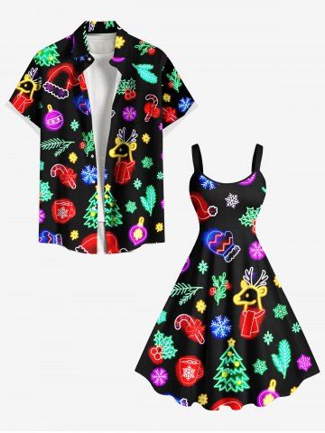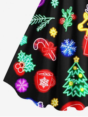 Plus Size Christmas Tree Ball Elk Hat Gloves Holy Fruit Leaf Print Tank Dress - Black - L