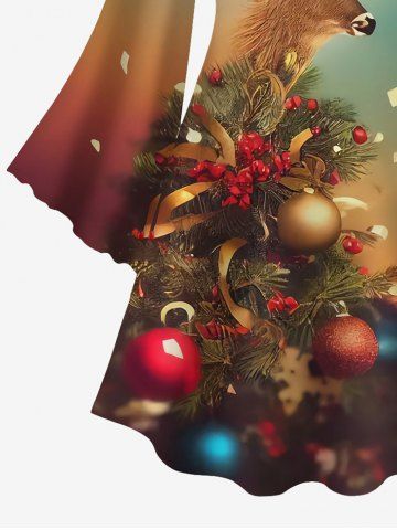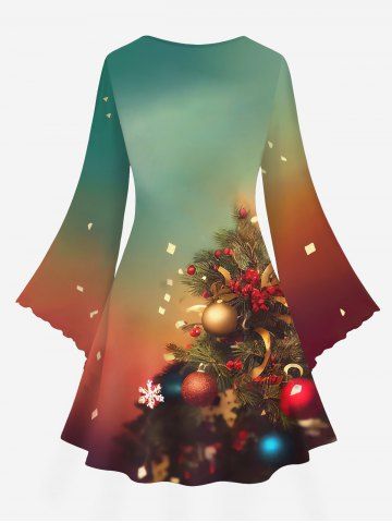 Plus Size Christmas Tree Ball Elk Snowflake Print Flare Sleeves Ombre A Line Dress - Multi-a - 5x