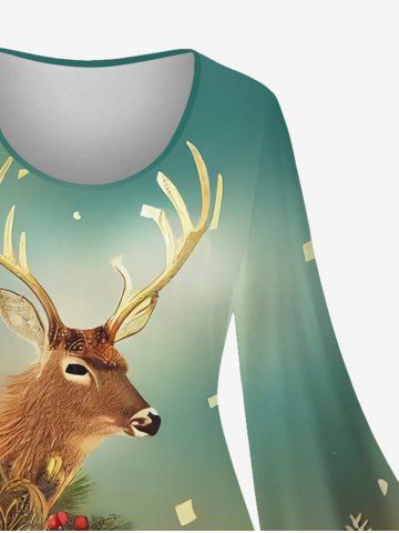 Dresses > Plus Size Christmas Tree Ball Elk Snowflake Print Flare Sleeves Ombre A Line Dress