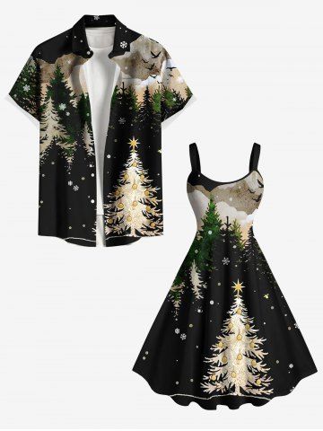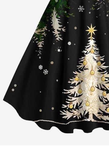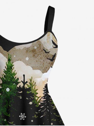 Plus Size Christmas Tree Ball Forest Snowflake Cloud Print A Line Tank Dress - Black - 2x