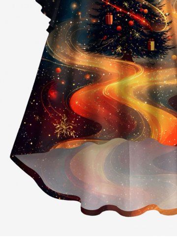 Dresses > Plus Size Christmas Tree Ball Galaxy Star Light Beam Glitter 3D Print Ruched Flare Sleeve High Low Dress