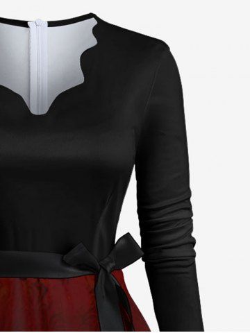 Plus Size Christmas Tree Ball Leaf Print Scalloped Neck A Line Dress with Removable Belt - Black - 5xl