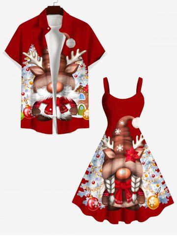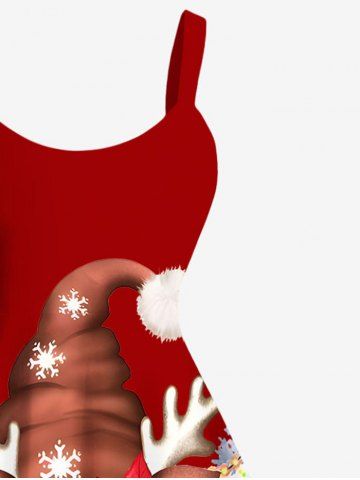 Plus Size Christmas Tree Ball Light Snowflake Elk Print A Line Tank Dress - Red - 1x