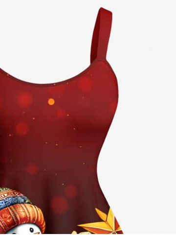 Plus Size Christmas Tree Ball Light Star Snowman Print Tank Dress - Red - 4x