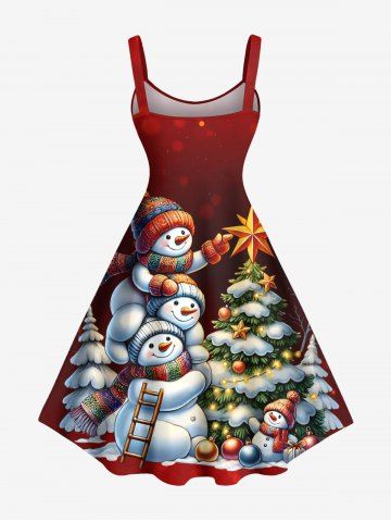 Plus Size Christmas Tree Ball Light Star Snowman Print Tank Dress - Red - 5x