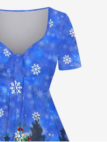 Plus Size Christmas Tree Ball Santa Claus Sack Snowflake Galaxy Print Cinched Dress - Blue - S