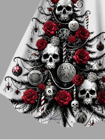 Plus Size Christmas Tree Ball Skulls Rose Flower Spider Web Print Tank Dress - White - S
