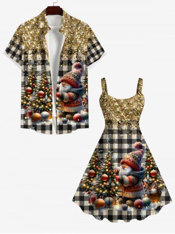 Dresses > Plus Size Christmas Tree Ball Snowflake Santa Claus Plaid Sparkling Sequin 3D Print Tank Dress