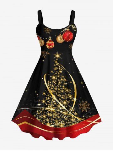 Plus Size Christmas Tree Ball Snowflake Star Colorblock Sequin Glitter 3D Print Tank Dress - Black - 6x