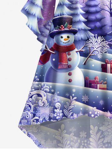 Plus Size Christmas Tree Ball Snowman Snowflake Gift Box Print Ruched Flare Sleeve High Low Dress - Purple - 4x