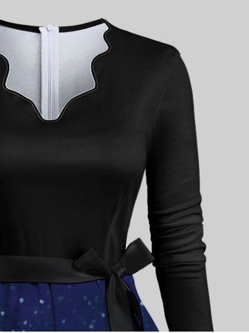 Plus Size Christmas Tree Ball Snowman Snowflake Owl Print A Line Dress With A Belt - Black - 7xl