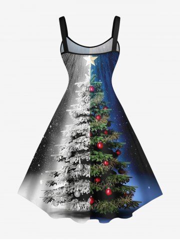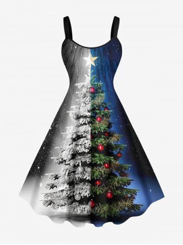 Dresses > Plus Size Christmas Tree Ball Star Galaxy Contrast Color Print Tank Dress